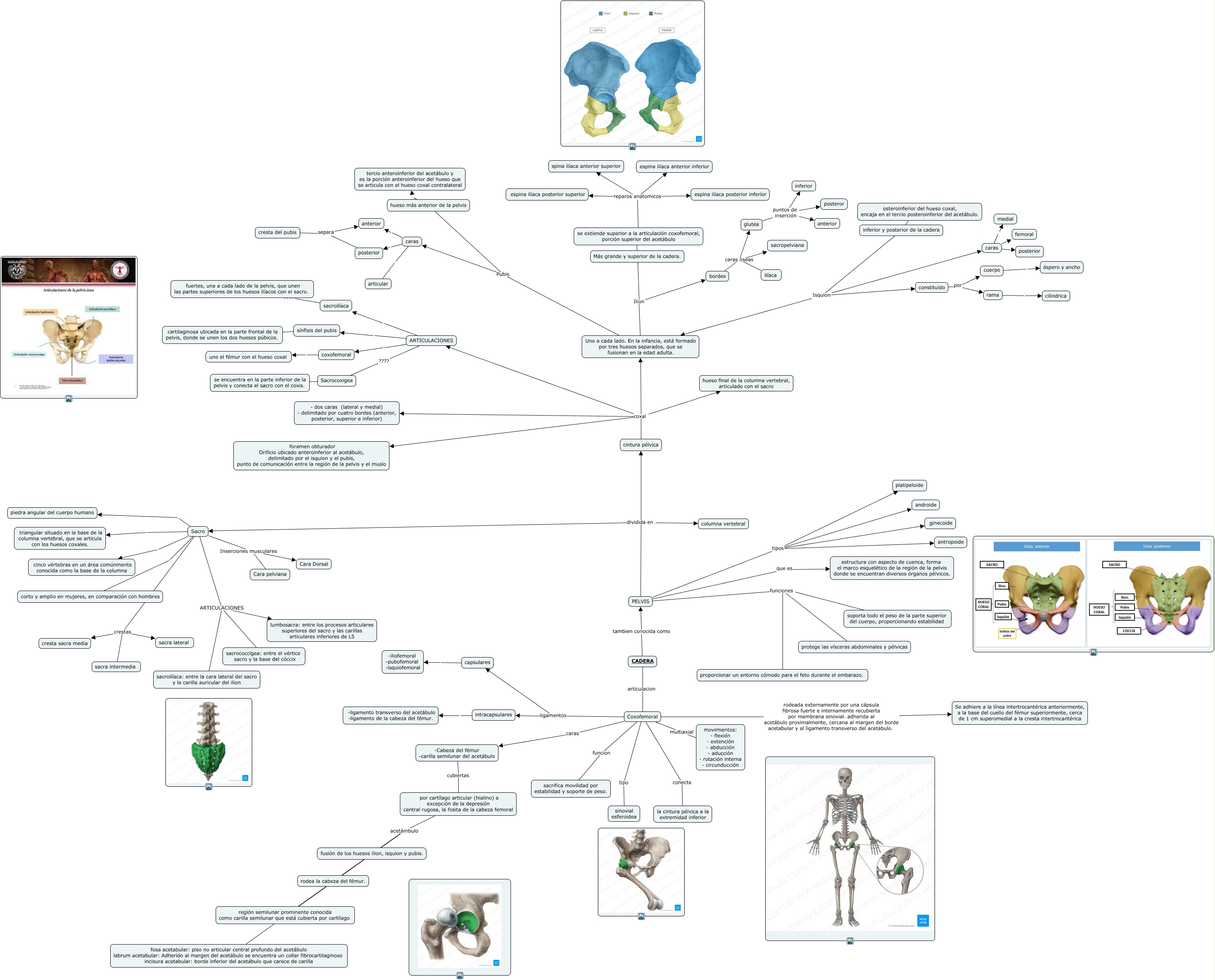 Este Cmap, tiene información relacionada con: cadera, ARTICULACIONES ???? Sacrocoxigea, Más grande y superior de la cadera. Ilion Uno a cada lado. En la infancia, está formado por tres huesos separados, que se fusionan en la edad adulta., PELVIS dividida en columna vertebral, Sacro cinco vértebras en un área comúnmente conocida como la base de la columna, Sacro crestas cresta sacra media, soporta todo el peso de la parte superior del cuerpo, proporcionando estabilidad funciones protege las vísceras abdominales y pélvicas, se extiende superior a la articulación coxofemoral, porción superior del acetábulo reparos anatomicos espina ilíaca anterior inferior, constituido por cuerpo, cuerpo áspero y ancho, Sacro corto y amplio en mujeres, en comparación con hombres, Sacro crestas sacra lateral, Más grande y superior de la cadera. Ilion bordes, PELVIS que es estructura con aspecto de cuenca, forma el marco esquelético de la región de la pelvis donde se encuentran diversos órganos pélvicos., -Cabeza del fémur -carilla semilunar del acetábulo cubiertas por cartílago articular (hialino) a excepción de la depresión central rugosa, la fosita de la cabeza femoral, capsulares -iliofemoral -pubofemoral -isquiofemoral, bordes caras oseas glutea, cintura pélvica coxal Uno a cada lado. En la infancia, está formado por tres huesos separados, que se fusionan en la edad adulta., CADERA tambien conocida como PELVIS, Coxofemoral multiaxial movimientos: - flexión - extención - abducción - aducción - rotación interna - circunducción, sacroilíaca ???? fuertes, una a cada lado de la pelvis, que unen las partes superiores de los huesos ilíacos con el sacro.