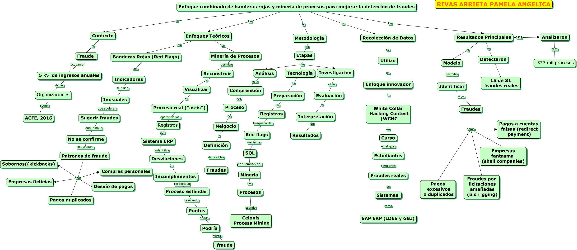Este Cmap, tiene información relacionada con: BANDEEE, SQL y aplicación de Minería, 5 % de ingresos anuales de las Organizaciones, Etapas la Investigación, Minería de Procesos permite Reconstruir, Minería de Procesos, Proceso real (“as-is”) apartir de los Registros, Analizaron ???? 377 mil procesos, Registros del Sistema ERP, Utilizó un Enfoque innovador, Fraudes reales en Sistemas, Enfoque innovador el White Collar Hacking Contest (WCHC, Preparación de Registros, Análisis es la Comprensión, Recolección de Datos se Utilizó, Indicadores que son Inusuales, Enfoque combinado de banderas rojas y minería de procesos para mejorar la detección de fraudes la Metodología, Fraude ocupan el 5 % de ingresos anuales, Etapas la Tecnología, Red flags mediante SQL, Resultados Principales el Modelo