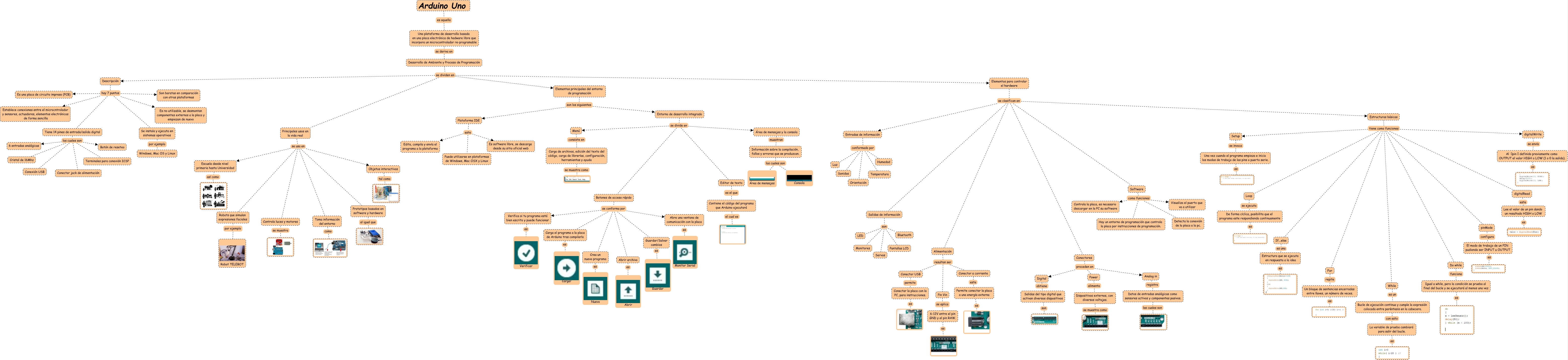 Este Cmap, tiene información relacionada con: Act1B2_Arduino 1, Área de mensajes y la consola muestran Información sobre la compilación, fallos y errores que se produzcan., Estructuras básicas tiene como funciones digitalWrite, Salidas de información son Pantallas LCD, Pin Vin se aplica 6-12V entre el pin GND y el pin RAW., digitalWrite se envía Al ́pin ́ definido previamente como OUTPUT el valor HIGH o LOW (1 o 0 la salida)., Elementos para controlar el hardware se clasifican en Estructuras básicas, Estructura que se ejecuta en respuesta a la idea es, Contiene el código del programa que Arduino ejecutará el cual es, Entradas de información conformado por Orientación, Salidas del tipo digital que activan diversos dispositivos son, Descripción hay 7 puntos Es una placa de circuito impreso (PCB), Alimentación resultan ser Pin Vin, If...else es una Estructura que se ejecuta en respuesta a la idea, Toma información del entorno como, Estructuras básicas tiene como funciones For, Abrir archivo es Abrir, Se instala y ejecuta en sistemas operativos por ejemplo Windows, Mac OS y Linux, Estructuras básicas tiene como funciones Do while, La variable de prueba cambiará para salir del bucle. es, Entorno de desarrollo integrado se divide en Editor de texto