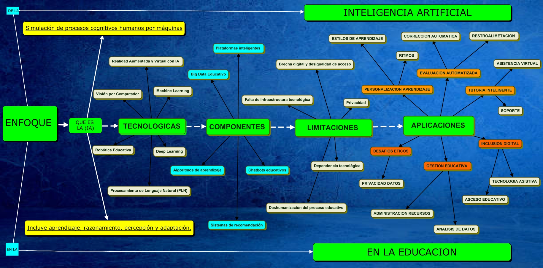 Este Cmap, tiene información relacionada con: Copia de MAPA MENTAL - IA - EDWIN PATIÑO, DESAFIOS ETICOS PRIVACIDAD DATOS, PERSONALIZACION APRENDIZAJE RITMOS, TECNOLOGICAS Robótica Educativa, COMPONENTES Algoritmos de aprendizaje, TUTORIA INTELIGENTE ASISTENCIA VIRTUAL, LIMITACIONES Brecha digital y desigualdad de acceso, TUTORIA INTELIGENTE SOPORTE, ENFOQUE QUE ES LA (IA), ENFOQUE DE LA INTELIGENCIA ARTIFICIAL, TECNOLOGICAS Procesamiento de Lenguaje Natural (PLN), INCLUSION DIGITAL ASCESO EDUCATIVO, APLICACIONES INCLUSION DIGITAL, COMPONENTES Sistemas de recomendación, ENFOQUE EN LA EN LA EDUCACION, QUE ES LA (IA) Incluye aprendizaje, razonamiento, percepción y adaptación., INCLUSION DIGITAL TECNOLOGIA ASISTIVA, APLICACIONES PERSONALIZACION APRENDIZAJE, TECNOLOGICAS Visión por Computador, TECNOLOGICAS COMPONENTES, TECNOLOGICAS Machine Learning