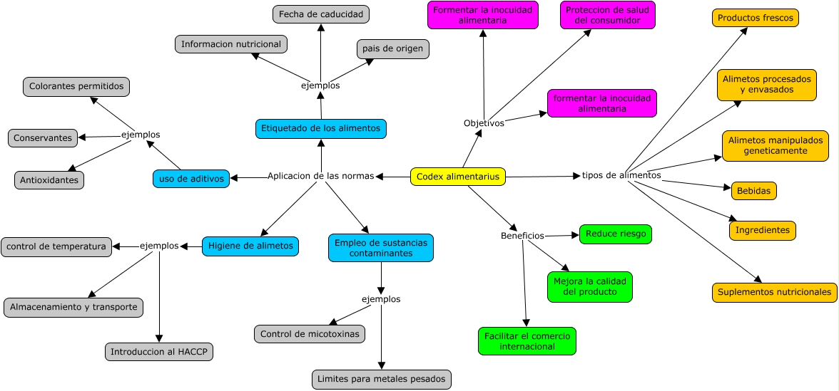 Este Cmap, tiene información relacionada con: mapa conceptual UNAH, Codex alimentarius Objetivos Proteccion de salud del consumidor, Codex alimentarius Beneficios Reduce riesgo, uso de aditivos ejemplos Antioxidantes, Etiquetado de los alimentos ejemplos pais de origen, Higiene de alimetos ejemplos control de temperatura, Codex alimentarius Aplicacion de las normas uso de aditivos, Codex alimentarius Objetivos Formentar la inocuidad alimentaria, Codex alimentarius tipos de alimentos Suplementos nutricionales, Codex alimentarius Objetivos formentar la inocuidad alimentaria, Codex alimentarius Aplicacion de las normas Higiene de alimetos, Higiene de alimetos ejemplos Almacenamiento y transporte, Codex alimentarius Aplicacion de las normas Etiquetado de los alimentos, Codex alimentarius Aplicacion de las normas Empleo de sustancias contaminantes, Etiquetado de los alimentos ejemplos Informacion nutricional, Codex alimentarius tipos de alimentos Alimetos manipulados geneticamente, uso de aditivos ejemplos Colorantes permitidos, Etiquetado de los alimentos ejemplos Fecha de caducidad, Codex alimentarius tipos de alimentos Productos frescos, Empleo de sustancias contaminantes ejemplos Control de micotoxinas, Higiene de alimetos ejemplos Introduccion al HACCP