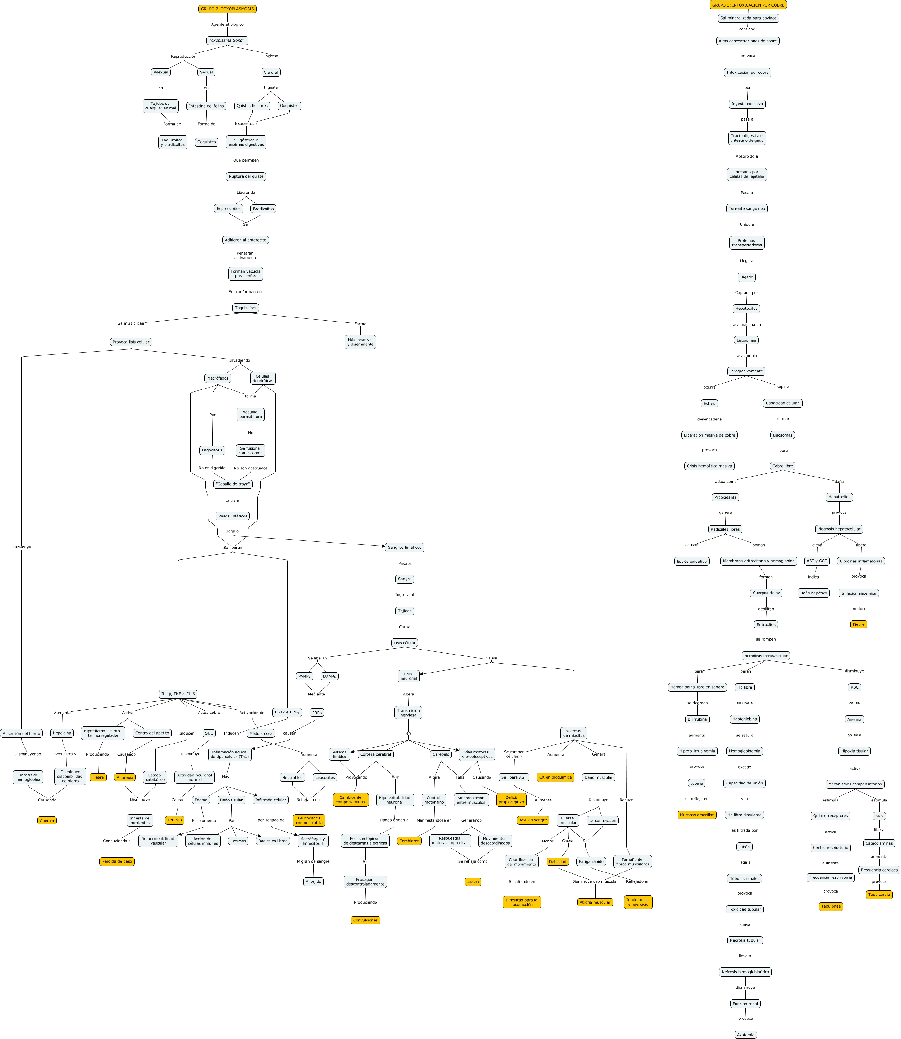 Este Cmap, tiene información relacionada con: Fisios corte 3.2, Taquizoítos Se multiplican Provoca lisis celular, Edema Por aumento De permeabilidad vascular, Se libera AST Aumenta AST en sangre, Macrófagos forma Vacuola parasitófora, Tejidos de cualquier animal Forma de Taquizoítos y bradizoítos, IL-1β, TNF-α, IL-6 Aumenta Hepcidina, Fagocitosis No es digerido "Caballo de troya", IL-1β, TNF-α, IL-6 Activa Centro del apetito, Sal mineralizada para bovinos contiene Altas concentraciones de cobre, Daño muscular Disminuye La contracción, Hiperbilirrubinemia provoca Icteria, GRUPO 1: INTOXICACIÓN POR COBRE ???? Sal mineralizada para bovinos, Necrosis hepatocelular libera Citocinas inflamatorias, Actividad neuronal normal Causa Letargo, Daño tisular Por Enzimas, Macrófagos Se liberan IL-12 e IFN-γ, Hb libre circulante es filtrada por Riñón, Centro del apetito Causando Anorexia, Síntesis de hemoglobina Causando Anemia, PRRs causan Inflamación aguda de tipo celular (Th1)