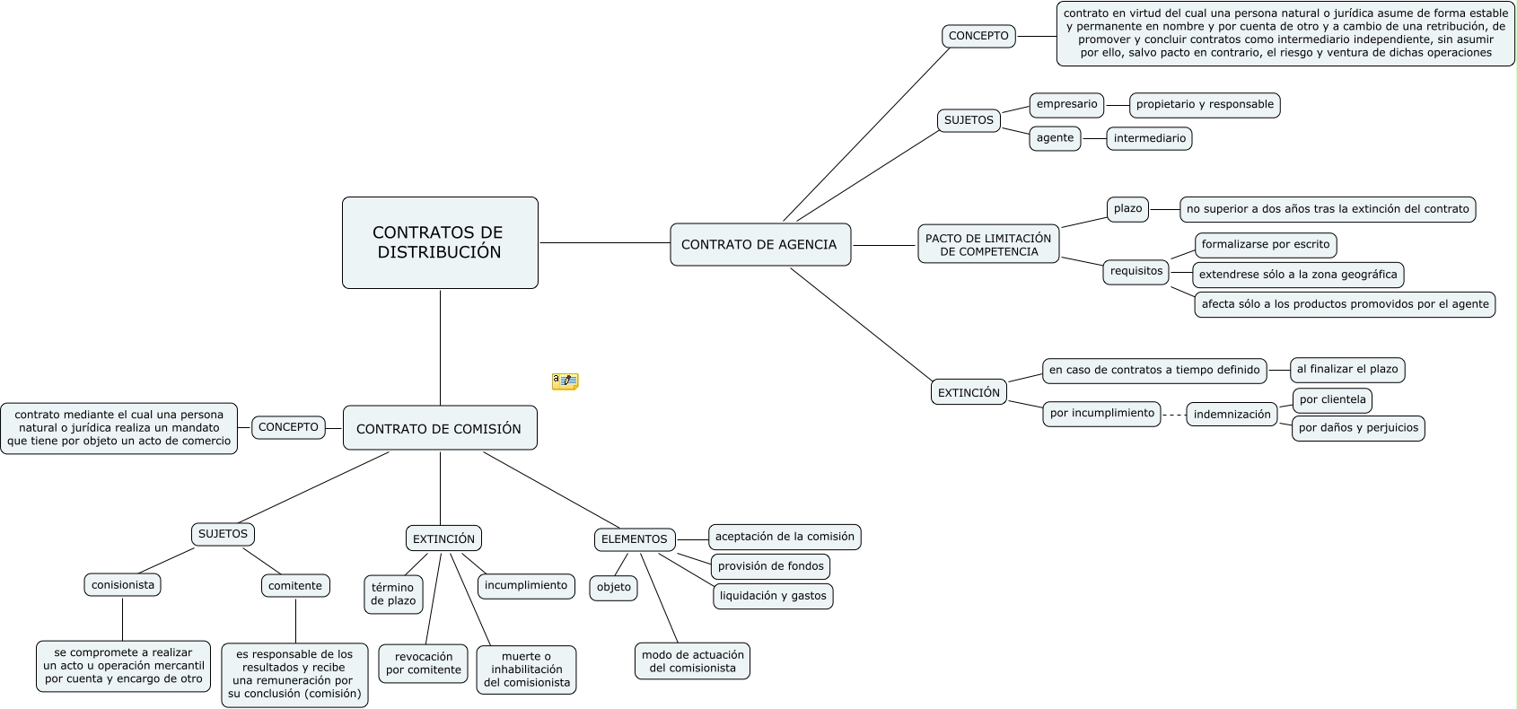 contratos de distribución, PACTO DE LIMITACIÓN DE COMPETENCIA ???? plazo, EXTINCIÓN ???? revocación por comitente, CONCEPTO ???? contrato en virtud del cual una persona natural o jurídica asume de forma estable y permanente en nombre y por cuenta de otro y a cambio de una retribución, de promover y concluir contratos como intermediario independiente, sin asumir por ello, salvo pacto en contrario, el riesgo y ventura de dichas operaciones, ELEMENTOS ???? aceptación de la comisión, SUJETOS ???? empresario, CONTRATO DE AGENCIA ???? CONCEPTO, agente ???? intermediario, EXTINCIÓN ???? en caso de contratos a tiempo definido, empresario ???? propietario y responsable, EXTINCIÓN ???? incumplimiento