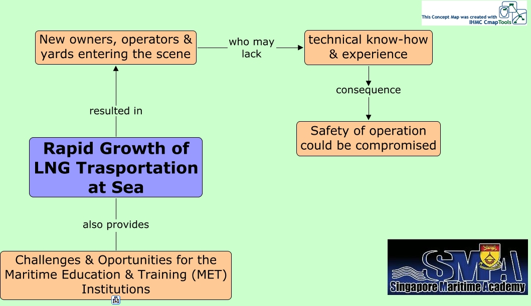 Implication of Growth, technical know-how & experience consequence Safety of operation could be compromised, Rapid Growth of LNG Trasportation at Sea resulted in New owners, operators & yards entering the scene, New owners, operators & yards entering the scene who may lack technical know-how & experience, Rapid Growth of LNG Trasportation at Sea also provides Challenges & Oportunities for the Maritime Education & Training (MET) Institutions