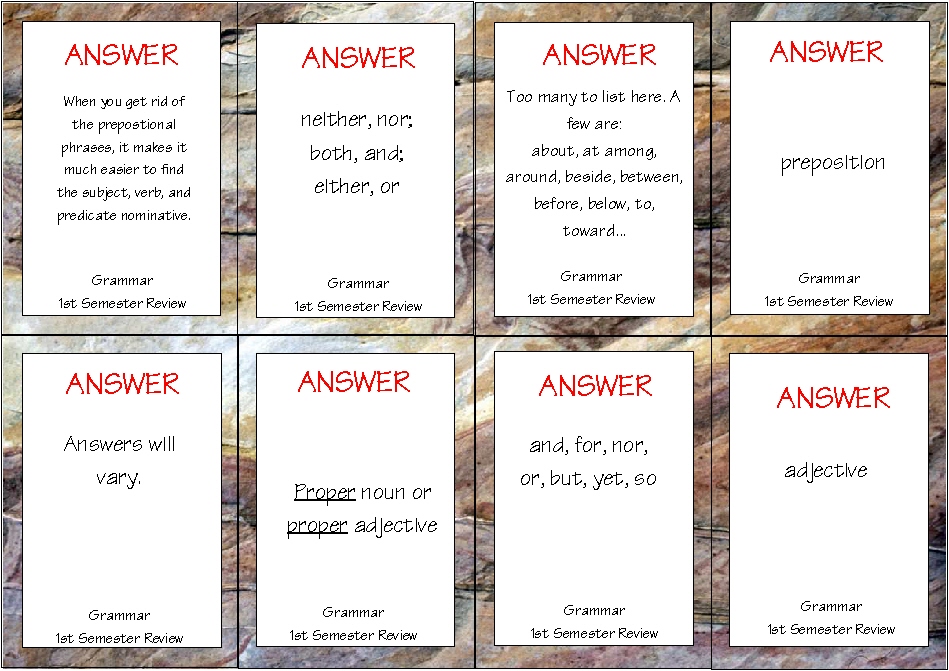 Parts of Speech Flashcards set 2, Print your own flashcards ???? Front side, Print your own flashcards ???? Back side
