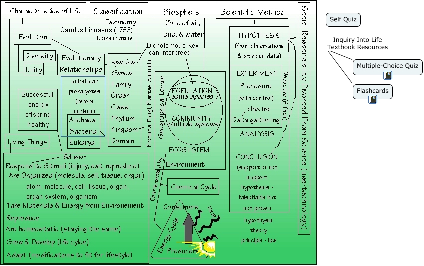 01 The Study of Life, Self Quiz Inquiry Into Life Textbook Resources Multiple-Choice Quiz, Self Quiz Inquiry Into Life Textbook Resources Flashcards