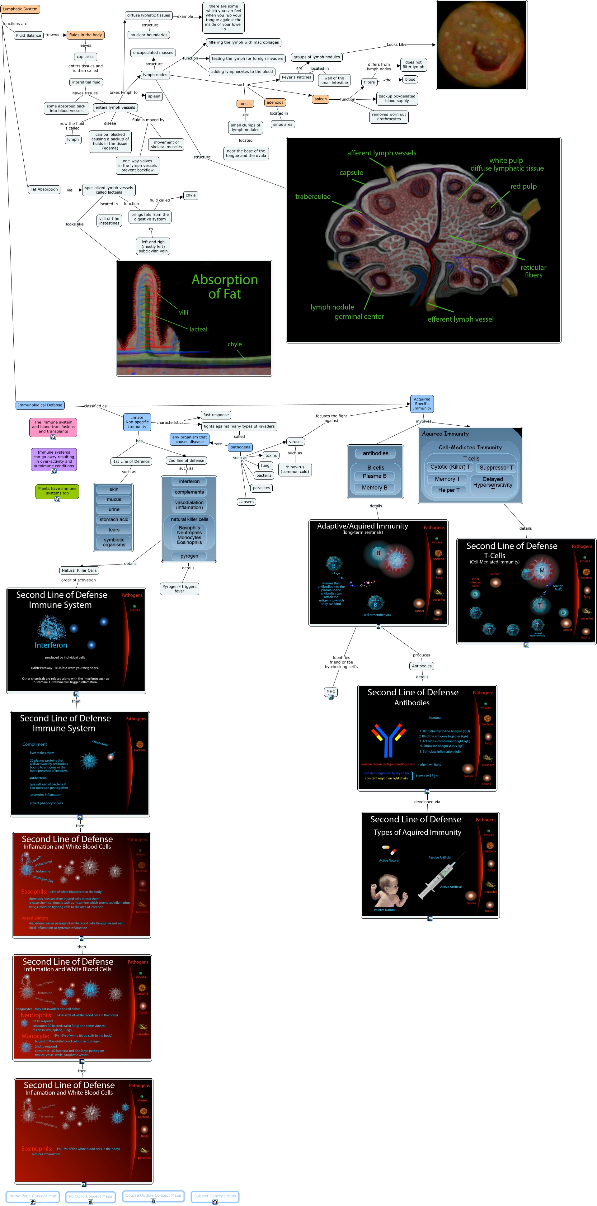 This Concept Map, created with IHMC CmapTools, has information related to: 13 Lymphatic and Immune System, small clumps of lymph nodules located near the base of the tongue and the uvula, capilaries enters tissues and is then called interstitial fluid, brings fats from the digestive system fluid called chyle, Acquired Specific Immunity focuses the fight against viruses, pathogens such as cansers, lymph nodes structure encapsulated masses, Acquired Specific Immunity involves, details ????, lymph nodes such as tonsils, then, Lymphatic System functions are Fat Absorption, fights against many types of invaders called pathogens, pathogens such as toxins, filters the blood, Fat Absorption via specialized lymph vessels called lacteals, ???? produces Antibodies, diffuse lyphatic tissues structure no clear boundaries, enters lymph vessels takes lymph to spleen, diffuse lyphatic tissues example there are some which you can feel when you rub your tongue against the inside of your lower lip, Immunological Defense functions are Fat Absorption