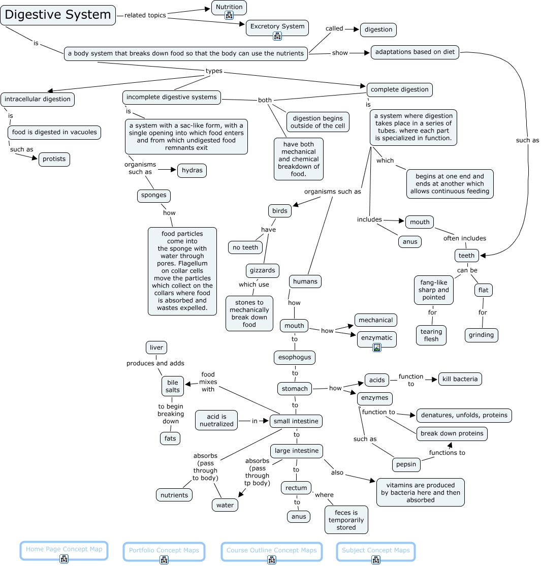 Digestive System and Nutrition, adaptations based on diet such as teeth, a system where digestion takes place in a series of tubes. where each part is specialized in function. organisms such as birds, enzymes such as pepsin, incomplete digestive systems both digestion begins outside of the cell, large intestine also vitamins are produced by bacteria here and then absorbed, small intestine absorbs (pass through to body) water, small intestine food mixes with bile salts, liver produces and adds bile salts, incomplete digestive systems is a system with a sac-like form, with a single opening into which food enters and from which undigested food remnants exit, a system with a sac-like form, with a single opening into which food enters and from which undigested food remnants exit organisms such as sponges
