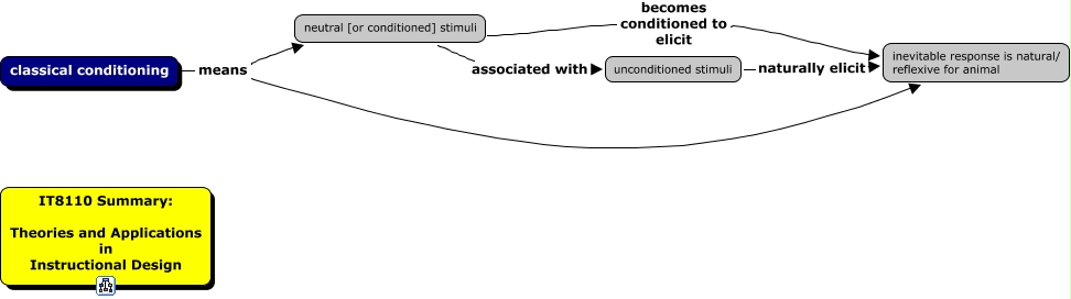 CC_BLT_IT8110_Summary, neutral [or conditioned] stimuli becomes conditioned to elicit inevitable response is natural/ reflexive for animal, unconditioned stimuli naturally elicit inevitable response is natural/ reflexive for animal, classical conditioning means neutral [or conditioned] stimuli, classical conditioning means inevitable response is natural/ reflexive for animal, neutral [or conditioned] stimuli associated with unconditioned stimuli