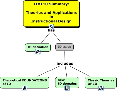 _Main_IT8110_Summary, ID scope includes new ID domains, ID scope includes Classic Theories OF ID, IT8110 Summary: Theories and Applications in Instructional Design has ID definition, IT8110 Summary: Theories and Applications in Instructional Design has ID scope, ID scope includes Theoretical FOUNDATIONS of ID