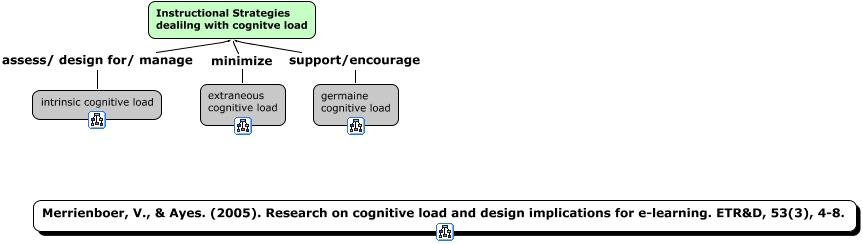 InstrucStrategy_CogLoad_Merrinboyer_Ayers_2005_CogLoad, Instructional Strategies dealilng with cognitve load assess/ design for/ manage intrinsic cognitive load, Instructional Strategies dealilng with cognitve load minimize extraneous cognitive load, Instructional Strategies dealilng with cognitve load support/encourage germaine cognitive load