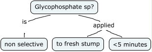 Glycophosphate, Glycophosphate sp? applied ɝ minutes, Glycophosphate sp? is non selective, Glycophosphate sp? applied to fresh stump