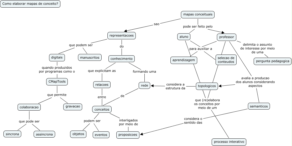 Este Mapa Conceitual tem informações relacionadas a: Mapas conceituais, representacoes que podem ser manuscritos, professor delimita o assunto de interesse por meio de uma pergunta pedagogica, conhecimento formando uma rede, mapas conceituais pode ser feito pelo professor, professor que (re)elabora os conceitos por meio de um processo interativo, aluno para auxiliar a aprendizagem, CMapTools que permite gravacao, topologicos considera a estrutura da rede, conceitos podem ser eventos, representacoes que podem ser digitais