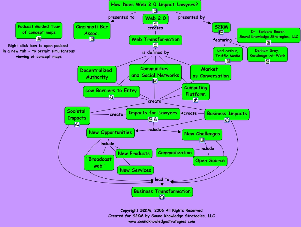 Web 2.0 and LawyersFinal, Web Transformation is defined by Market as Conversation, Market as Conversation create Societal Impacts, Business Impacts include New Opportunities, Computing Platform create Business Impacts, Web Transformation is defined by Decentralized Authority, New Opportunities include "Broadcast web", How Does Web 2.0 Impact Lawyers? presented to Cincinnati Bar Assoc., Web Transformation is defined by Computing Platform, Business Impacts include New Challenges, New Opportunities include New Services