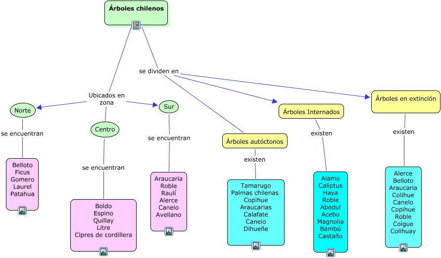 Este mapa conceptual tiene información relacionada a: Los árboles, Árboles chilenos se dividen en Árboles autóctonos, Árboles en extinción existen Alerce Belloto Araucaria Colihue Canelo Copihue Roble Coigue Colihuay, Árboles chilenos se dividen en Árboles en extinción, Norte se encuentran Belloto Ficus Gomero Laurel Patahua, Árboles chilenos Ubicados en zona Centro, Centro se encuentran Boldo Espino Quillay Litre Cipres de cordillera, Árboles chilenos Ubicados en zona Sur, Árboles chilenos Ubicados en zona Norte, Sur se encuentran Araucaria Roble Raulí Alerce Canelo Avellano, Árboles autóctonos existen Tamarugo Palmas chilenas Copihue Araucarias Calafate Canelo Dihueñe