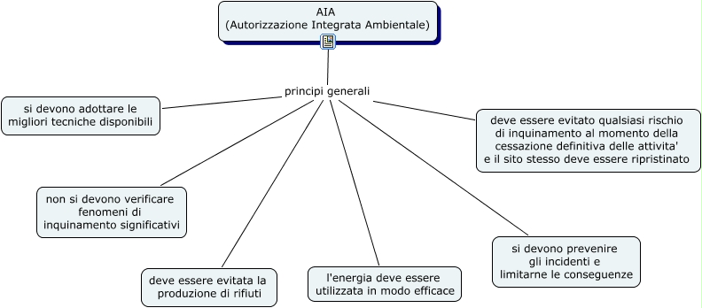 aia, AIA (Autorizzazione Integrata Ambientale) principi generali l'energia deve essere utilizzata in modo efficace, AIA (Autorizzazione Integrata Ambientale) principi generali si devono prevenire gli incidenti e limitarne le conseguenze, AIA (Autorizzazione Integrata Ambientale) principi generali si devono adottare le migliori tecniche disponibili, AIA (Autorizzazione Integrata Ambientale) principi generali deve essere evitata la produzione di rifiuti, AIA (Autorizzazione Integrata Ambientale) principi generali deve essere evitato qualsiasi rischio di inquinamento al momento della cessazione definitiva delle attivita' e il sito stesso deve essere ripristinato, AIA (Autorizzazione Integrata Ambientale) principi generali non si devono verificare fenomeni di inquinamento significativi