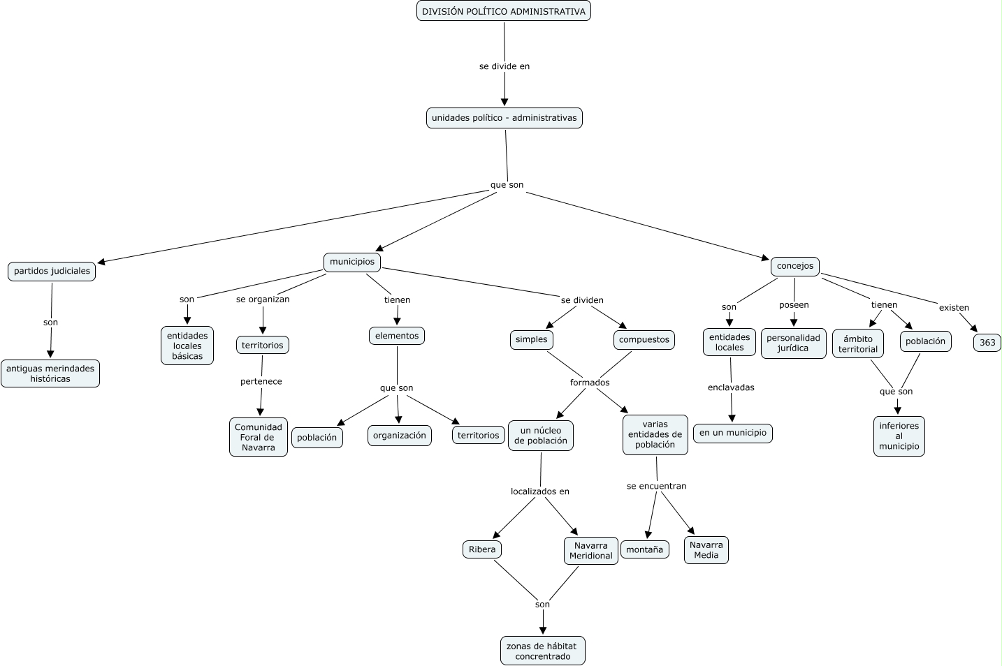 división politicacmap, unidades político - administrativas que son concejos, Ribera son zonas de hábitat concrentrado, unidades político - administrativas que son partidos judiciales, municipios se dividen compuestos, concejos existen 363, concejos poseen personalidad jurídica, compuestos formados un núcleo de población, municipios se organizan territorios, elementos que son población, ámbito territorial que son inferiores al municipio