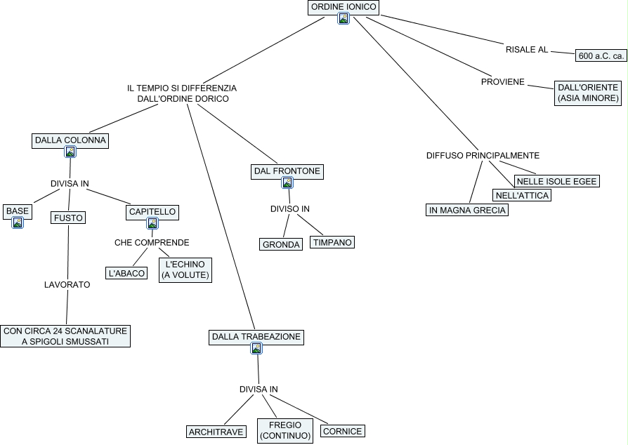Questa Mappa Concettuale ha informazioni correlate a: 3 - ORDINE IONICO, DALLA TRABEAZIONE DIVISA IN FREGIO (CONTINUO), DALLA TRABEAZIONE DIVISA IN ARCHITRAVE, FUSTO LAVORATO CON CIRCA 24 SCANALATURE A SPIGOLI SMUSSATI, ORDINE IONICO PROVIENE DALL'ORIENTE (ASIA MINORE), ORDINE IONICO IL TEMPIO SI DIFFERENZIA DALL'ORDINE DORICO DAL FRONTONE, CAPITELLO CHE COMPRENDE L'ECHINO (A VOLUTE), DAL FRONTONE DIVISO IN TIMPANO, DALLA TRABEAZIONE DIVISA IN CORNICE, CAPITELLO CHE COMPRENDE L'ABACO, ORDINE IONICO DIFFUSO PRINCIPALMENTE NELLE ISOLE EGEE, ORDINE IONICO DIFFUSO PRINCIPALMENTE IN MAGNA GRECIA, ORDINE IONICO DIFFUSO PRINCIPALMENTE NELL'ATTICA, ORDINE IONICO IL TEMPIO SI DIFFERENZIA DALL'ORDINE DORICO DALLA TRABEAZIONE, DAL FRONTONE DIVISO IN GRONDA, DALLA COLONNA DIVISA IN FUSTO, ORDINE IONICO IL TEMPIO SI DIFFERENZIA DALL'ORDINE DORICO DALLA COLONNA, ORDINE IONICO RISALE AL 600 a.C. ca., DALLA COLONNA DIVISA IN BASE, DALLA COLONNA DIVISA IN CAPITELLO
