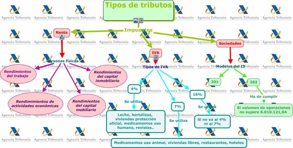 Este Cmap, tiene información relacionada con: Los tipos de impuestos con fondo de escritorio, 4% Se utiliza Leche, hortalizas, viviendas protección oficial, medicamentos uso humano, revistas.., 7% Se utiliza Medicamentos uso animal, viviendas libres, restaurantes, hoteles, 202 Ha de cumplir El volumen de operaciones no supere 6.010.121,04, Sociedades Modelos del IS 201, Renta Personas físicas Rendimientos del trabajo, Tipos de tributos Impuestos IVA, Tipos de tributos Impuestos Renta, Sociedades Modelos del IS 202, IVA Tipos de IVA 16%, Renta Personas físicas Rendimientos del capital inmobiliario, Tipos de tributos Impuestos Sociedades, Renta Personas físicas Rendimientos del capital mobiliario, Renta Personas físicas Rendimimientos de actividades económicas, IVA Tipos de IVA 7%, 16% Se utiliza Si no va al 4% ni al 7%, IVA Tipos de IVA 4%