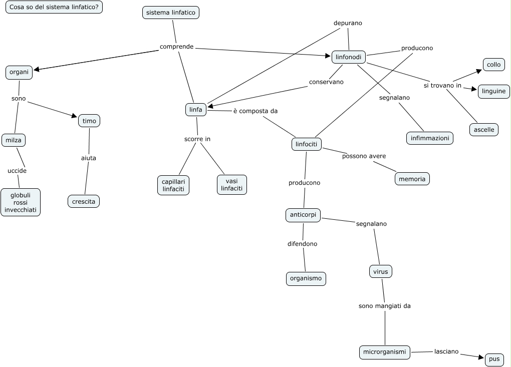 Questa Cmap, creata con IHMC CmapTools, contiene informazioni relative a: map conc sistema linfatico giacomo b, microrganismi lasciano pus, sistema linfatico comprende linfonodi, anticorpi difendono organismo, linfa è composta da linfociti, linfonodi si trovano in ascelle, sistema linfatico comprende linfa, linfonodi segnalano infimmazioni, sistema linfatico comprende organi, organi sono timo, anticorpi segnalano virus, timo aiuta crescita, linfa scorre in capillari linfaciti, linfonodi si trovano in collo, linfonodi depurano linfa, linfa scorre in vasi linfaciti, linfonodi si trovano in linguine, linfociti possono avere memoria, linfonodi producono linfociti, sistema linfatico comprende organi, organi sono milza