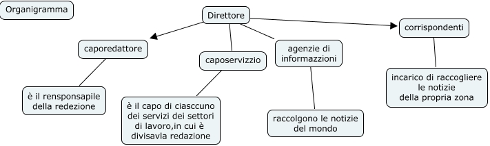 Questa Cmap, creata con IHMC CmapTools, contiene informazioni relative a: organigrammaREDAZIONE QUOTIDIANO, Direttore ???? caporedattore, caporedattore ???? è il rensponsapile della redezione, caposervizzio ???? è il capo di ciasccuno dei servizi dei settori di lavoro,in cui è divisavla redazione, Direttore ???? corrispondenti, Direttore ???? caposervizzio, agenzie di informazzioni ???? raccolgono le notizie del mondo, corrispondenti ???? incarico di raccogliere le notizie della propria zona, Direttore ???? agenzie di informazzioni