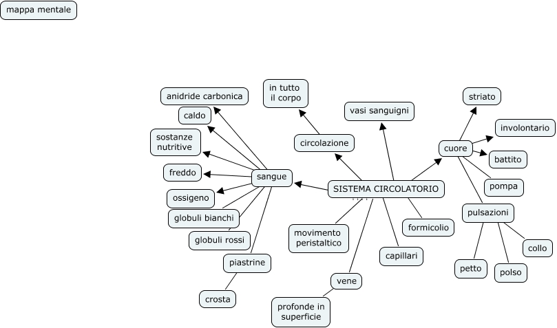 Questa Cmap, creata con IHMC CmapTools, contiene informazioni relative a: sistema circolatorio mappa mentale, sangue ???? sostanze nutritive, SISTEMA CIRCOLATORIO ???? cuore, sangue ???? freddo, SISTEMA CIRCOLATORIO ???? circolazione, cuore ???? pompa, sangue ???? globuli bianchi, SISTEMA CIRCOLATORIO ???? sangue, circolazione ???? in tutto il corpo, cuore ???? striato, pulsazioni ???? petto, SISTEMA CIRCOLATORIO ???? capillari, SISTEMA CIRCOLATORIO ???? vasi sanguigni, piastrine ???? crosta, sangue ???? globuli rossi, pulsazioni ???? polso, cuore ???? battito, SISTEMA CIRCOLATORIO ???? vene, cuore ???? pulsazioni, SISTEMA CIRCOLATORIO ???? movimento peristaltico, cuore ???? involontario