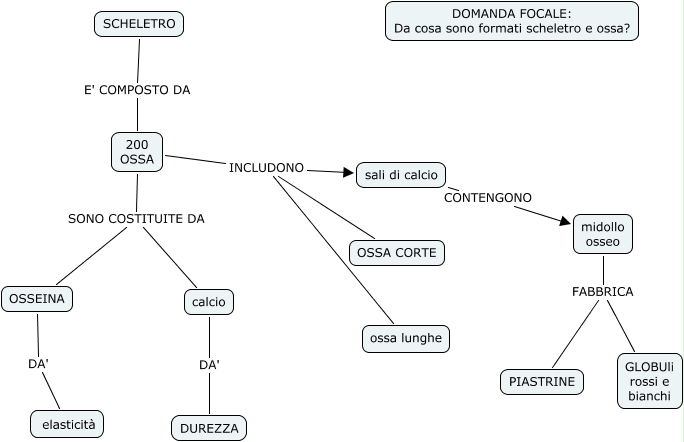 map con SCHELETRO2, calcio DA' DUREZZA, 200 OSSA INCLUDONO OSSA CORTE, SCHELETRO E' COMPOSTO DA 200 OSSA, OSSEINA DA' elasticità, midollo osseo FABBRICA PIASTRINE, sali di calcio CONTENGONO midollo osseo, 200 OSSA SONO COSTITUITE DA calcio, 200 OSSA INCLUDONO ossa lunghe, 200 OSSA INCLUDONO sali di calcio, midollo osseo FABBRICA GLOBUli rossi e bianchi
