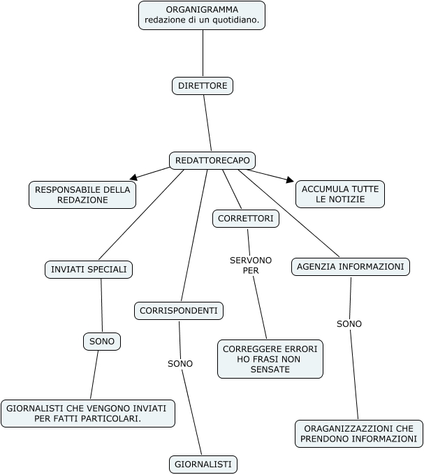 map conc ORGANIGRAMMA redazione di un quotidiano, SONO ???? GIORNALISTI CHE VENGONO INVIATI PER FATTI PARTICOLARI., REDATTORECAPO ???? ACCUMULA TUTTE LE NOTIZIE, REDATTORECAPO ???? AGENZIA INFORMAZIONI, CORRETTORI SERVONO PER CORREGGERE ERRORI HO FRASI NON SENSATE, CORRISPONDENTI SONO GIORNALISTI, REDATTORECAPO ???? INVIATI SPECIALI, DIRETTORE ???? REDATTORECAPO, AGENZIA INFORMAZIONI SONO ORAGANIZZAZZIONI CHE PRENDONO INFORMAZIONI, ORGANIGRAMMA redazione di un quotidiano. ???? DIRETTORE, INVIATI SPECIALI SERVONO PER SONO