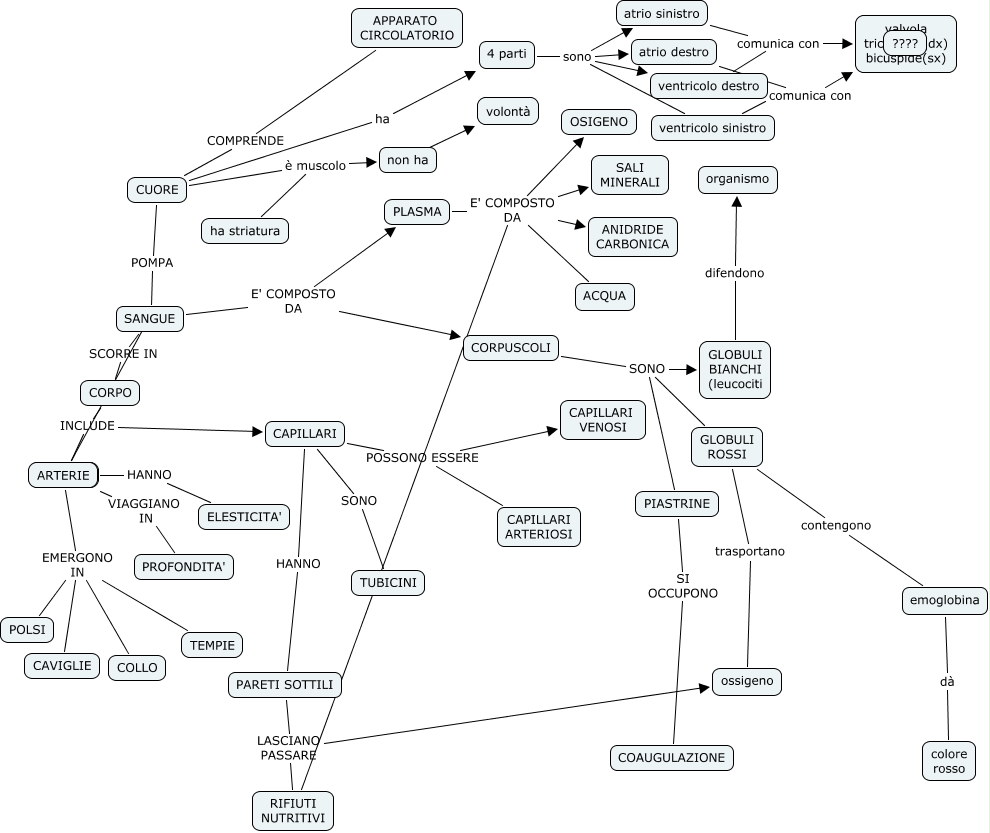APPARATO CIRCOLATORIO, 4 parti sono ventricolo sinistro, GLOBULI ROSSI contengono emoglobina, CUORE POMPA SANGUE, CUORE ha 4 parti, CORPUSCOLI SONO PIASTRINE, ARTERIE VIAGGIANO IN PROFONDITA', CAPILLARI HANNO PARETI SOTTILI, CAPILLARI POSSONO ESSERE CAPILLARI ARTERIOSI, CAPILLARI POSSONO ESSERE CAPILLARI VENOSI, ARTERIE EMERGONO IN COLLO