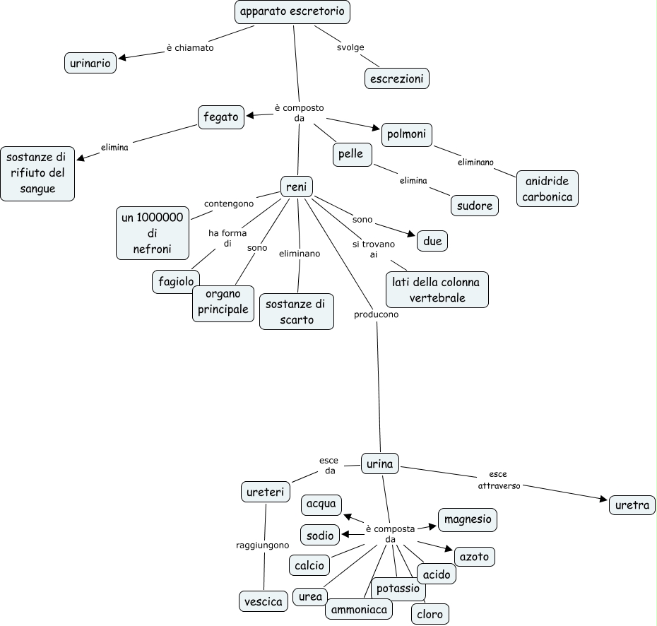apparato escretorio, urina è composta da acqua, urina è composta da magnesio, urina è composta da urea, reni sono organo principale, ureteri raggiungono vescica, pelle elimina sudore, urina esce attraverso uretra, urina esce da ureteri, urina è composta da cloro, fegato elimina sostanze di rifiuto del sangue