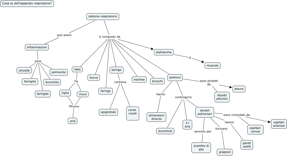 map conc apparato respiratorio giacomo b, infiammazioni sono laringite, sistema respiratorio è composto da bocca, diaframma è muscolo, naso ha muco, polmoni hanno dimensioni diverse, polmoni sono protetti da pleure, laringe contiene corde vocali, polmoni sono protetti da liquido pleurico, laringe contiene epiglottide, sistema respiratorio è composto da diaframma