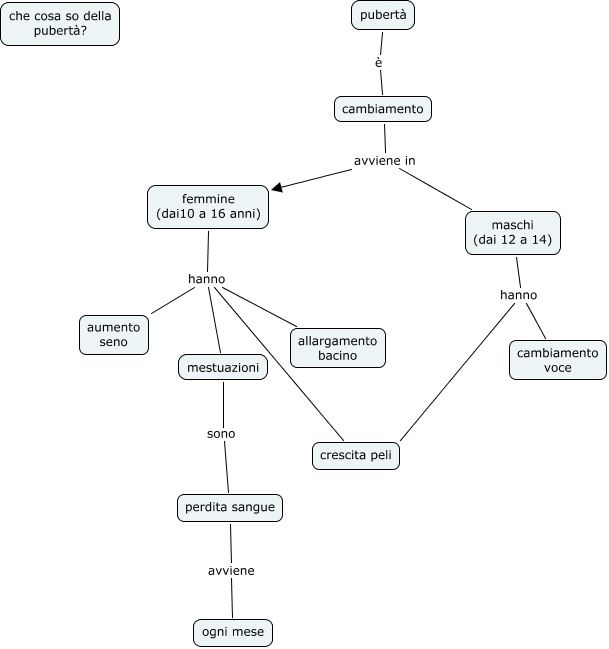 cosa sappiamo della pubertà, femmine (dai10 a 16 anni) hanno allargamento bacino, femmine (dai10 a 16 anni) hanno mestuazioni, femmine (dai10 a 16 anni) hanno crescita peli, mestuazioni sono perdita sangue, maschi (dai 12 a 14) hanno cambiamento voce, femmine (dai10 a 16 anni) hanno aumento seno, pubertà è cambiamento, cambiamento avviene in maschi (dai 12 a 14), perdita sangue avviene ogni mese, maschi (dai 12 a 14) hanno crescita peli