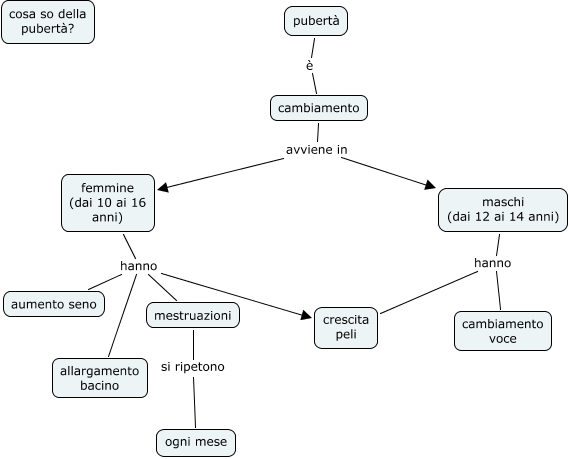 Questa Cmap, creata con IHMC CmapTools, contiene informazioni relative a: pubertà mappa concettuale giacomo c, pubertà è cambiamento, femmine (dai 10 ai 16 anni) hanno crescita peli, cambiamento avviene in maschi (dai 12 ai 14 anni), maschi (dai 12 ai 14 anni) hanno cambiamento voce, mestruazioni si ripetono ogni mese, maschi (dai 12 ai 14 anni) hanno crescita peli, cambiamento avviene in femmine (dai 10 ai 16 anni), femmine (dai 10 ai 16 anni) hanno aumento seno, femmine (dai 10 ai 16 anni) hanno allargamento bacino, femmine (dai 10 ai 16 anni) hanno mestruazioni