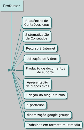 Esse mapa conceitual, produzido no IHMC CmapTools, tem a informação relacionada a: cptransversais TIC- 1º P_5, Professor para Sistematização de Conteúdos, Professor para Sequências de Conteúdos -app, Professor para Trabalhos em formato multimedia, Professor para Apresentação de diapositivos, Professor para Produção de documentos de suporte, Professor para Utilização de Vídeos, Professor para e-portfolios, Professor para Recurso à Internet, Professor para Criação do blogue turma, Professor para dinamização google groups