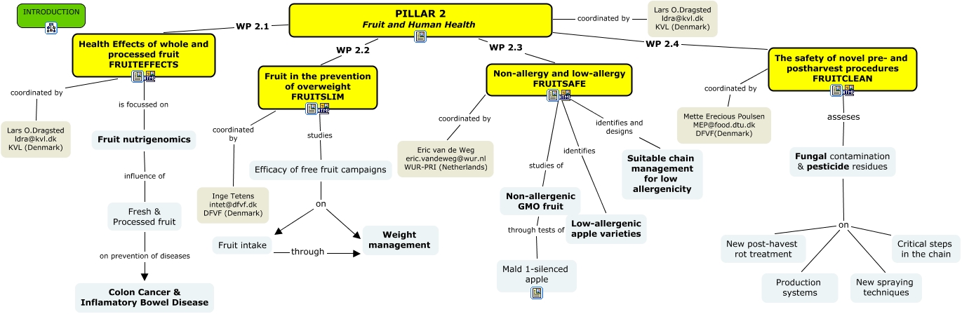 Isafruit's PILLAR 2, Health Effects of whole and processed fruit FRUITEFFECTS is focussed on Fruit nutrigenomics, Fruit in the prevention of overweight FRUITSLIM studies Efficacy of free fruit campaigns, PILLAR 2 Fruit and Human Health WP 2.3 Non-allergy and low-allergy FRUITSAFE, PILLAR 2 Fruit and Human Health WP 2.2 Fruit in the prevention of overweight FRUITSLIM, Fungal contamination & pesticide residues on Production systems, PILLAR 2 Fruit and Human Health WP 2.1 Health Effects of whole and processed fruit FRUITEFFECTS, Fruit nutrigenomics influence of Fresh & Processed fruit, PILLAR 2 Fruit and Human Health coordinated by Lars O.Dragsted ldra@kvl.dk KVL (Denmark), Non-allergy and low-allergy FRUITSAFE identifies and designs Suitable chain management for low allergenicity, Efficacy of free fruit campaigns on Weight management