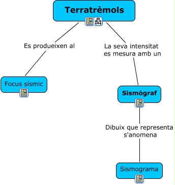 Este Cmap, tiene información relacionada con: Terratrèmols, Sismògraf Dibuix que representa s'anomena Sismograma, Terratrèmols Es produeixen al Focus sísmic, Terratrèmols La seva intensitat es mesura amb un Sismògraf