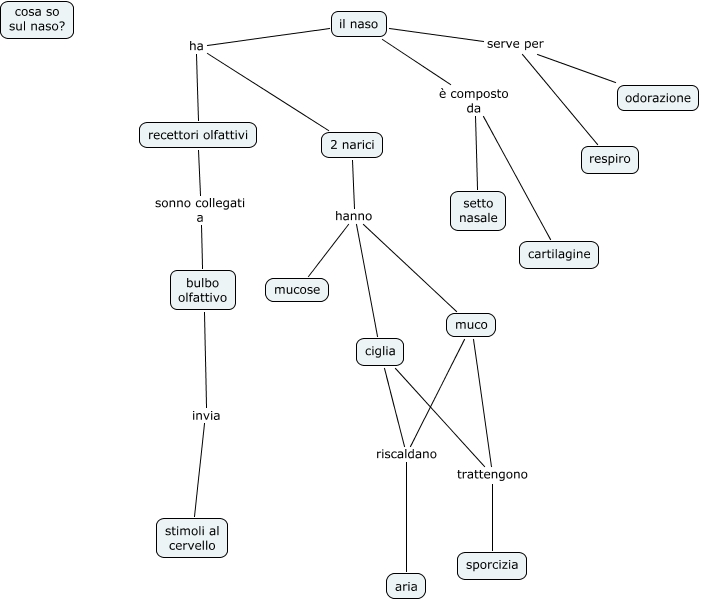 il naso, bulbo olfattivo invia stimoli al cervello, ciglia riscaldano aria, 2 narici hanno mucose, 2 narici hanno ciglia, recettori olfattivi sonno collegati a bulbo olfattivo, il naso serve per respiro, il naso è composto da cartilagine, il naso serve per odorazione, il naso ha recettori olfattivi, muco riscaldano aria