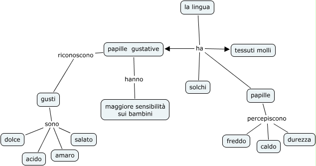 lingua, papille percepiscono caldo, papille gustative riconoscono gusti, papille percepiscono durezza, gusti sono salato, gusti sono amaro, la lingua ha papille gustative, gusti sono acido, papille percepiscono freddo, la lingua ha papille, la lingua ha solchi