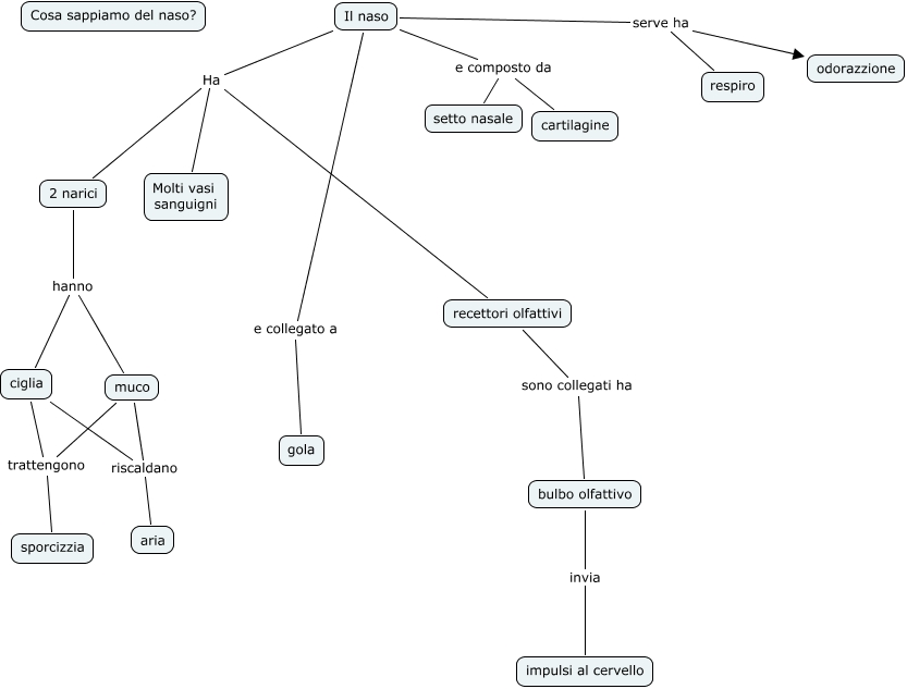 IL naso, 2 narici hanno muco, Il naso e collegato a gola, 2 narici hanno ciglia, ciglia riscaldano aria, Il naso Ha 2 narici, recettori olfattivi sono collegati ha bulbo olfattivo, muco trattengono sporcizzia, Il naso serve ha odorazzione, ciglia trattengono sporcizzia, bulbo olfattivo invia impulsi al cervello