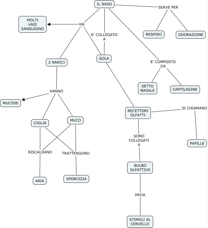 L'ORGANO DELL'OLFATTO, IL NASO SERVE PER RESPIRO, 2 NARICI HANNO CIGLIA, IL NASO SERVE PER ODORAZIONE, IL NASO E' COMPOSTO DA SETTO NASALE, MUCO TRATTENGONO SPORCIZIA, IL NASO HA 2 NARICI, IL NASO HA MOLTI VASI SANGUIGNO, MUCO RISCALDANO ARIA, IL NASO E' COMPOSTO DA CARTILAGINE, RECETTORI OLFATTI SONO COLLEGATI A BULBO OLFATTIVO