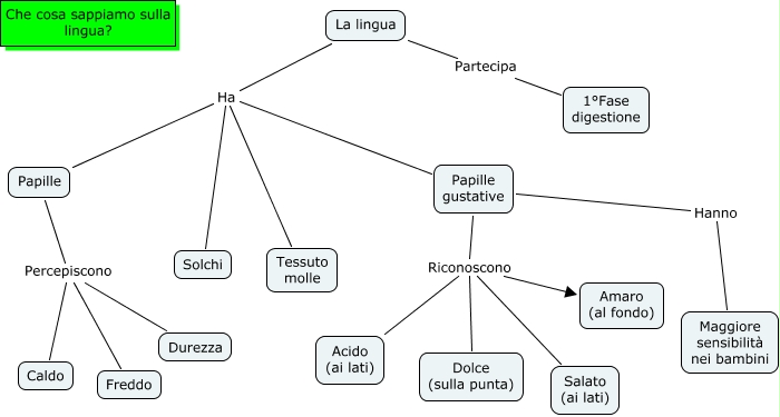 La lingua, Papille gustative Riconoscono Salato (ai lati), La lingua Ha Solchi, La lingua Ha Papille gustative, Papille Percepiscono Caldo, Papille gustative Hanno Maggiore sensibilità nei bambini, Papille gustative Riconoscono Amaro (al fondo), Papille Percepiscono Durezza, Papille gustative Riconoscono Acido (ai lati), La lingua Partecipa 1°Fase digestione, Papille gustative Riconoscono Dolce (sulla punta)
