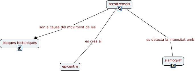 Este mapa conceptual tiene información relacionada a: terratremols, terratremols es crea al epicentre, terratremols es detecta la intensitat amb sismograf, terratremols son a causa del moviment de les plaques tectoniques
