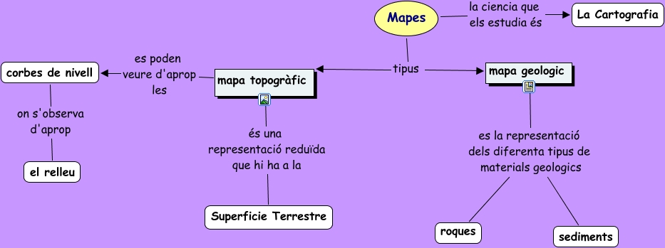 Este mapa conceptual tiene información relacionada a: Mapes, mapa geologic es la representació dels diferenta tipus de materials geologics sediments, mapa topogràfic es poden veure d'aprop les corbes de nivell, mapa geologic es la representació dels diferenta tipus de materials geologics roques, mapa topogràfic és una representació reduïda que hi ha a la Superficie Terrestre, Mapes tipus mapa topogràfic, Mapes la ciencia que els estudia és La Cartografia, Mapes tipus mapa geologic, corbes de nivell on s'observa d'aprop el relleu