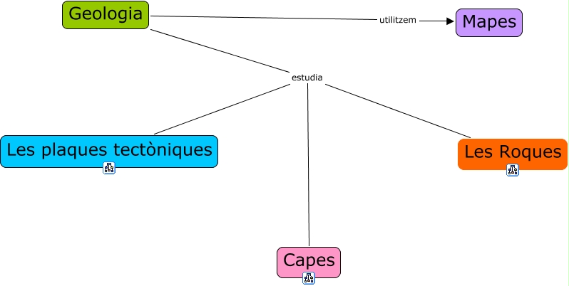 Este mapa conceptual tiene información relacionada a: Geologia, Geologia estudia Les Roques, Geologia estudia Les plaques tectòniques, Geologia utilitzem Mapes, Geologia estudia Capes