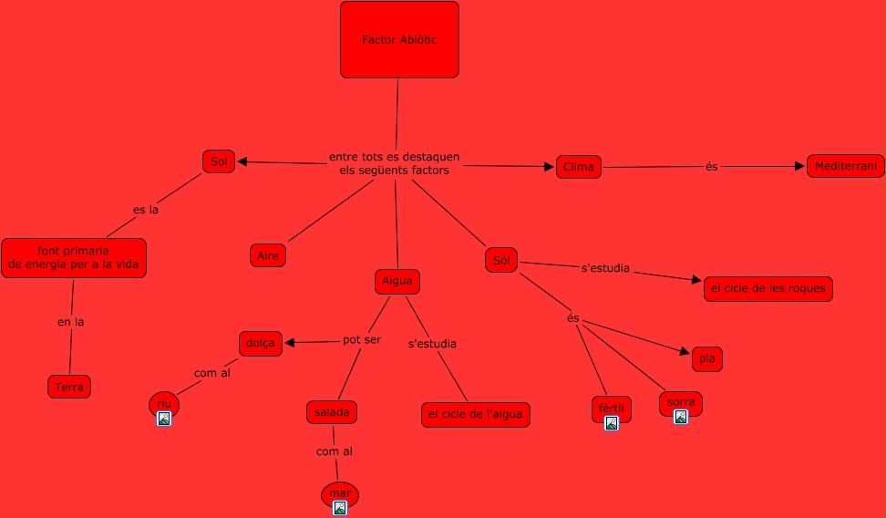 Este Cmap, tiene información relacionada con: factor abiotic, Factor Abiòtic entre tots es destaquen els següents factors Sol, font primaria de energia per a la vida en la Terra, Factor Abiòtic entre tots es destaquen els següents factors Aire, Factor Abiòtic entre tots es destaquen els següents factors Aigua, Aigua s'estudia el cicle de l'aigua, Clima és Mediterrani, Factor Abiòtic entre tots es destaquen els següents factors Sól, Sól és fèrtil, Sól s'estudia el cicle de les roques, Sól és pla, Aigua pot ser salada, Sól és sorra, salada com al mar, Aigua pot ser dolça, Factor Abiòtic entre tots es destaquen els següents factors Clima, Sol es la font primaria de energia per a la vida, dolça com al riu