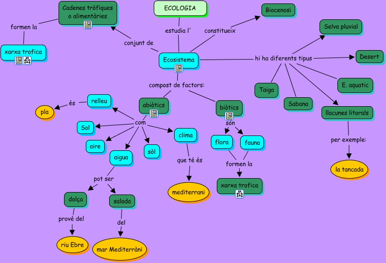 Este Cmap, tiene información relacionada con: ecologia, Ecosistema conjunt de Cadenes tròfiques o alimentàries, Ecosistema hi ha diferents tipus Desert, Ecosistema constitueix Biocenosi, abiòtics com aigua, abiòtics com Sol, abiòtics com sòl, Ecosistema compost de factors: biòtics, Ecosistema hi ha diferents tipus Taiga, salada del mar Mediterràni, Cadenes tròfiques o alimentàries formen la xarxa trofica, abiòtics com relleu, biòtics són fauna, llacunes litorals per exemple: la tancada, Ecosistema hi ha diferents tipus E. aquatic, Ecosistema hi ha diferents tipus llacunes litorals, Ecosistema hi ha diferents tipus Sabana, aigua pot ser salada, Ecosistema compost de factors: abiòtics, flora formen la xarxa trofica, biòtics són flora