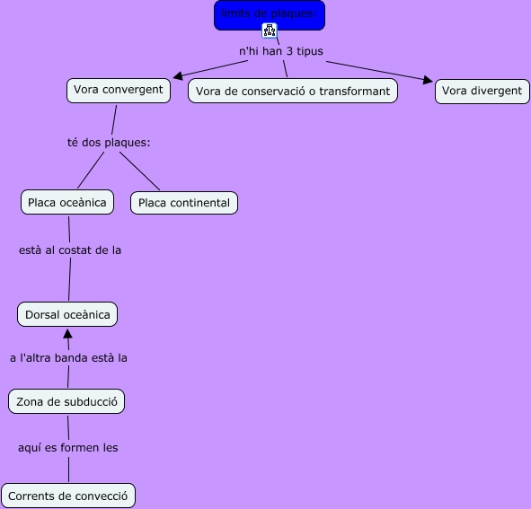 Este Cmap, tiene información relacionada con: límits de plaques, límits de plaques: n'hi han 3 tipus Vora divergent, Zona de subducció a l'altra banda està la Dorsal oceànica, Placa oceànica està al costat de la Dorsal oceànica, Vora convergent té dos plaques: Placa continental, Vora convergent té dos plaques: Placa oceànica, Zona de subducció aquí es formen les Corrents de convecció, límits de plaques: n'hi han 3 tipus Vora convergent, límits de plaques: n'hi han 3 tipus Vora de conservació o transformant
