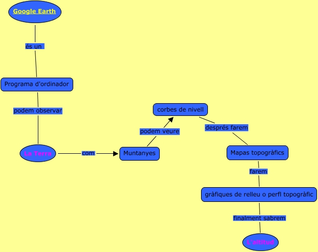 Este Cmap, tiene información relacionada con: Google Earth (geologia), Programa d'ordinador podem observar La Terra, Muntanyes podem veure corbes de nivell, Google Earth és un Programa d'ordinador, gràfiques de relleu o perfl topogràfic finalment sabrem L'altitud, La Terra com Muntanyes, Mapas topogràfics farem gràfiques de relleu o perfl topogràfic, corbes de nivell després farem Mapas topogràfics