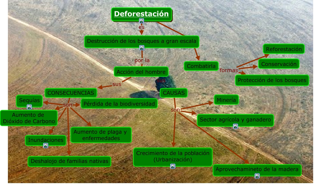 Este Cmap, tiene información relacionada con: Trabajo de geografia, Combatirla formas Reforestación, Combatirla formas Protección de los bosques, CAUSAS son Crecimiento de la población (Urbanización), Acción del hombre sus CAUSAS, CONSECUENCIAS son Inundaciones, Destrucción de los bosques a gran escala por la Acción del hombre, CONSECUENCIAS son Sequías, Acción del hombre sus CONSECUENCIAS, CONSECUENCIAS son Aumento de Dióxido de Carbono, CAUSAS son Minería, Deforestación es Destrucción de los bosques a gran escala, CAUSAS son Sector agrícola y ganadero, CAUSAS son Aprovechamineto de la madera, Combatirla formas Conservación, CONSECUENCIAS son Aumento de plaga y enfermedades, CONSECUENCIAS son Deshalojo de familias nativas, CONSECUENCIAS son Pérdida de la biodiversidad, Deforestación para Combatirla