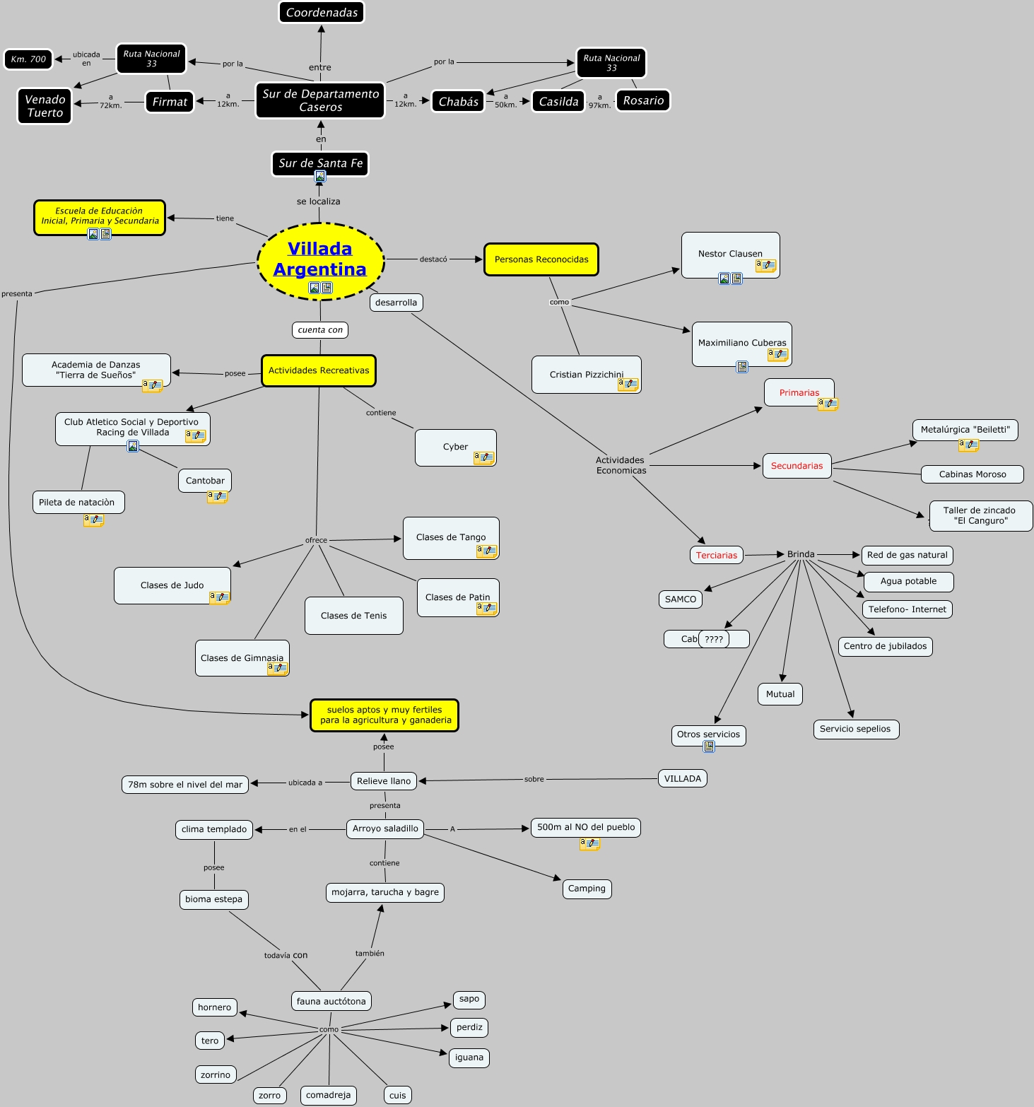 Villada_Santa Fe, Sur de Santa Fe en Sur de Departamento Caseros, Casilda a 97km. Rosario, Relieve llano ubicada a 78m sobre el nivel del mar, fauna auctótona como cuis, Actividades Recreativas contiene Cyber, Terciarias Brinda ????, Actividades Recreativas ofrece Clases de Tango, Ruta Nacional 33 ???? Firmat, Club Atletico Social y Deportivo Racing de Villada ???? Pileta de nataciòn, Terciarias Brinda Otros servicios
